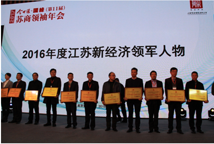 2016年尾之際,云白環(huán)境再次喜獲殊榮,王泳董事長(zhǎng)獲得2016江蘇省新經(jīng)濟(jì)領(lǐng)軍人物大獎(jiǎng),王董表示此獎(jiǎng)項(xiàng)不僅是個(gè)人之幸,更是全體云白人